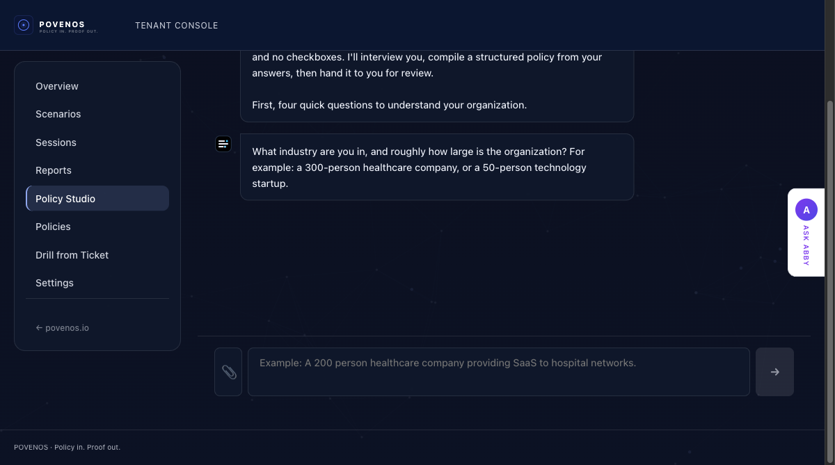 Most platforms help you write policies. Povenos helps you prove they work.